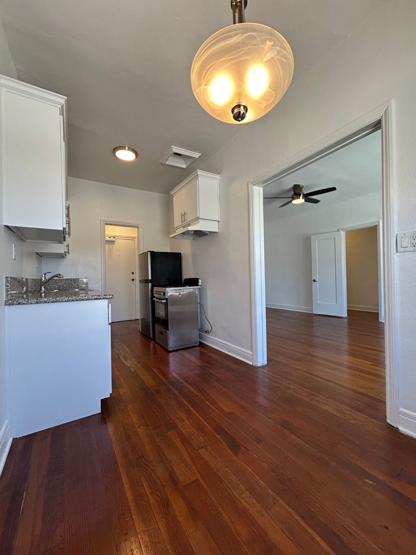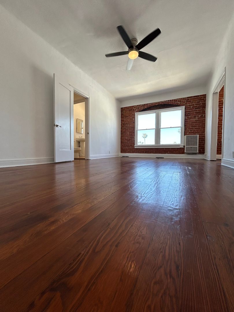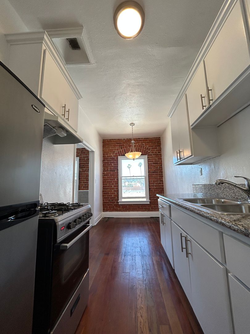Bright Top Floor Studio With North Facing View Of The Hills & Great Natural Light - Wood Floors, Brick Walls & Stainless Steel Appliances